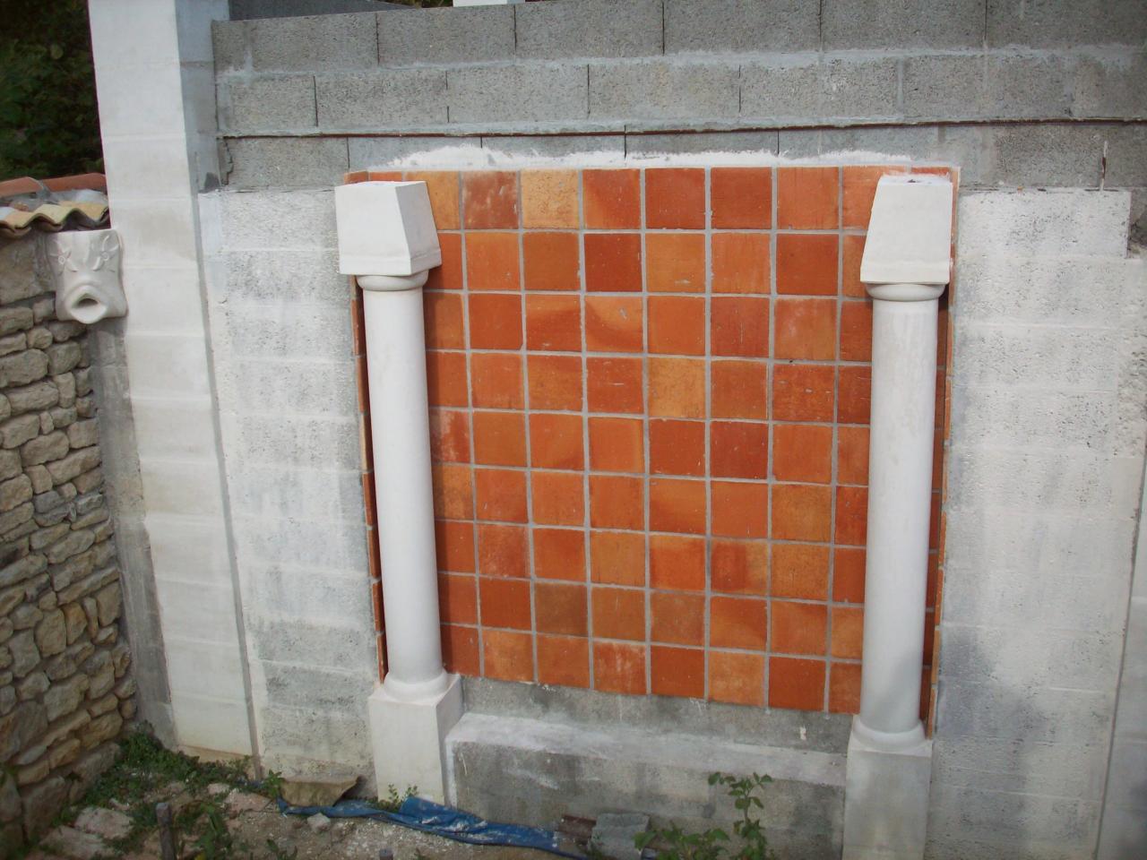 Erection des deux colonnades prêtes à recevoir la voûte.